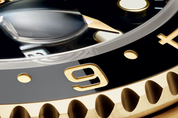 ▲劳力士向16713致敬而将126713GRNR面盘上的指针都改成黄金,包括GMT指针也是金光闪闪。