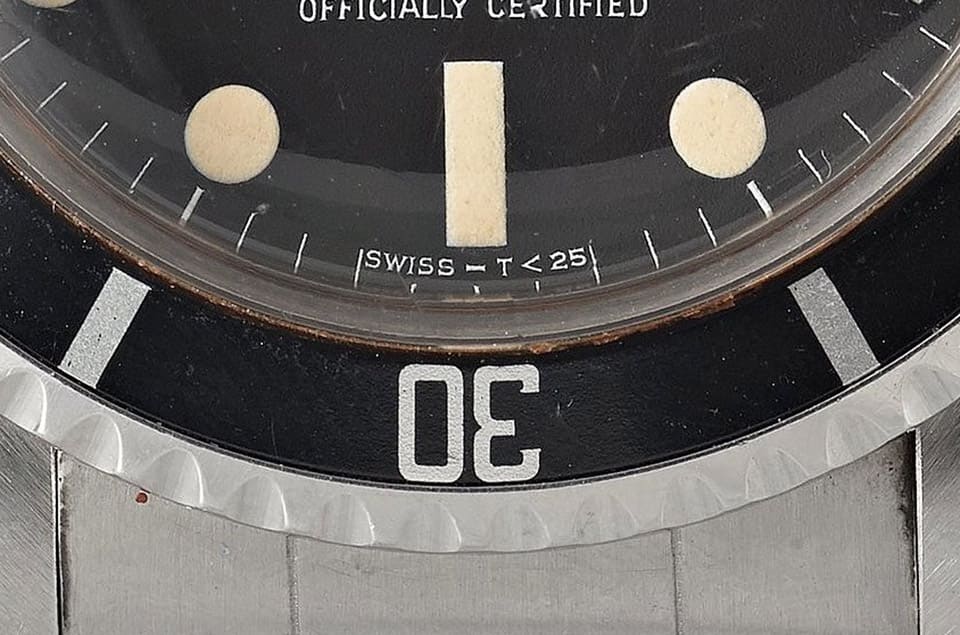 ▲前不久富艺斯拍卖会上的这款1960年代生产的劳力士水鬼5512,最终拍出57,960美金(约合台币186万)的高价,超越预估价高标,可见“T<25”字样对手表行情有加分效果。Source:Phillips