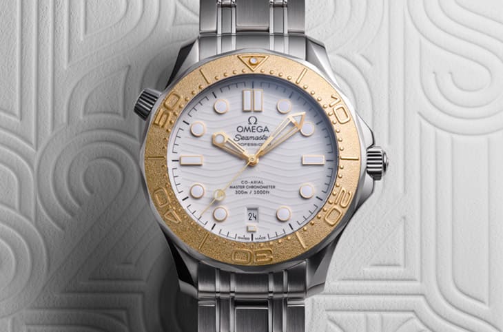 这款海马潜水300米由不锈钢与18K Moonshine™金异材质组合制成,后者主要应用于手表表圈,搭配雷射刻出的浮雕潜水刻度。面盘部分与多数系列作品一致採用陶瓷(白色)制作,并饰以拋光浮雕波浪图案。位于6点钟方向的日期显示隐藏一颗彩蛋,原来欧米茄将日期转盘的数字"24"改成了2024巴黎奥运的专属字型,这和其他日期数字的字型不同,突显2024这个重要年份,另外棒棒糖秒针的针尖也额外融入小巧的巴黎奥运标志,让人感受到手表有别于系列其他市售款的纪念性质。