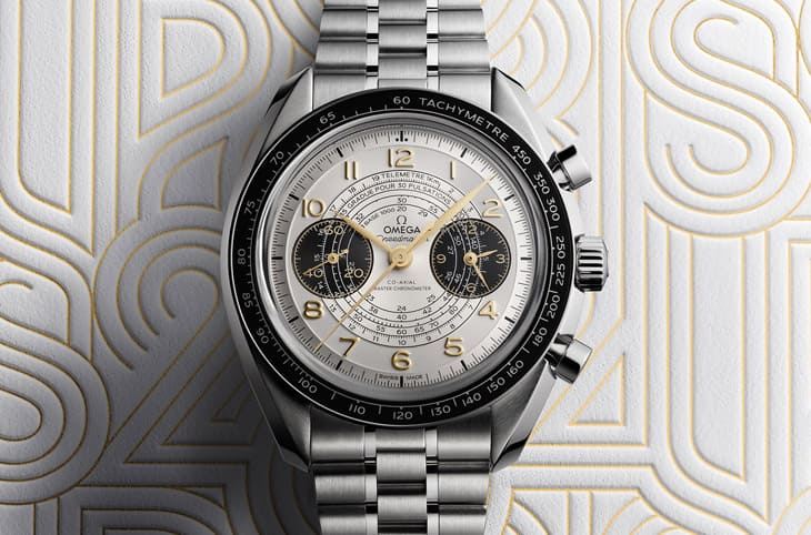 43mm的超霸Chronoscope设计以象徵2024巴黎奥运的金、黑和白色调呈现,引人注目的还有银白色珍珠纹面盘,欧米茄以1940年代盛行的「蜗纹」设计印上搭配计时功能的三种计时刻度,包括测速计、测距仪和脉搏计刻度。其他值得品味的细节包括黑色亮面小表盘、18K Moonshine™金阿拉伯数字时标,以及镀上Moonshine™金的叶形指针和小表盘指针。超霸Chronoscope 2024年巴黎奥运会纪念表共可分成不锈钢版本(配置阳极处理的黑色铝表圈,除链带之外还有有黑色穿孔皮革表带可选,以及另一个选择是18K Moonshine™金版本,这款表的黑色表圈为陶瓷制成,K金版本同样也有链带和黑色皮革表带之分。