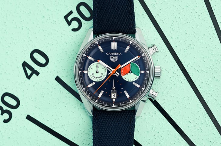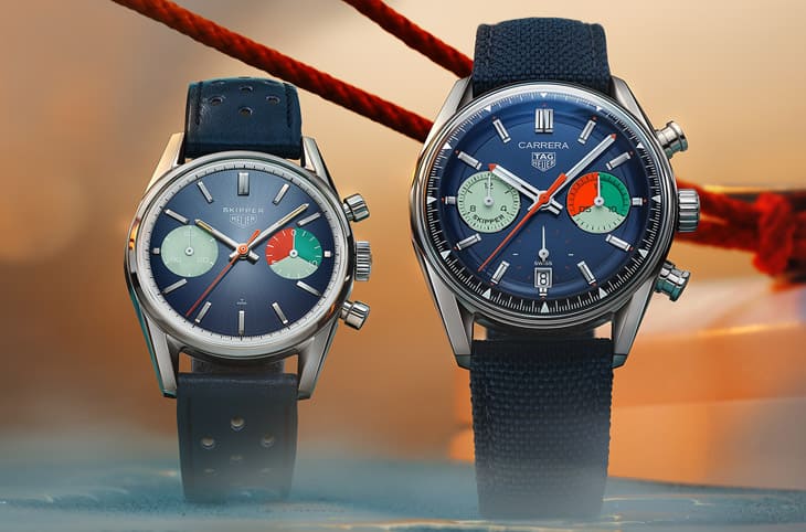 泰格豪雅2023和2024连续两年都推出了Carrera Skipper帆船计时码表这款作品,品牌先推出不锈钢款式再推玫瑰金款式,不管表壳材质为何,它们都是为了要致敬泰格豪雅在1968年制作的Skipper计时码表。现代的泰格豪雅或许和帆船运动连结没这麼强,但是品牌在1960年代可是有赞助美洲杯帆船「无畏号」(Intrepid),甚至还替帆船选手开发一款专用的Aquastar手表。至于Skipper计时码表则是在隔年诞生,用来庆祝无畏号在泰格豪雅支持下曾夺得冠军的荣耀。Skipper计时码表发行后直到1983年走入历史,所以2023年再度回归时让人感到惊讶却也惊喜,代表着品牌重新连起他们和帆船运动的关系。