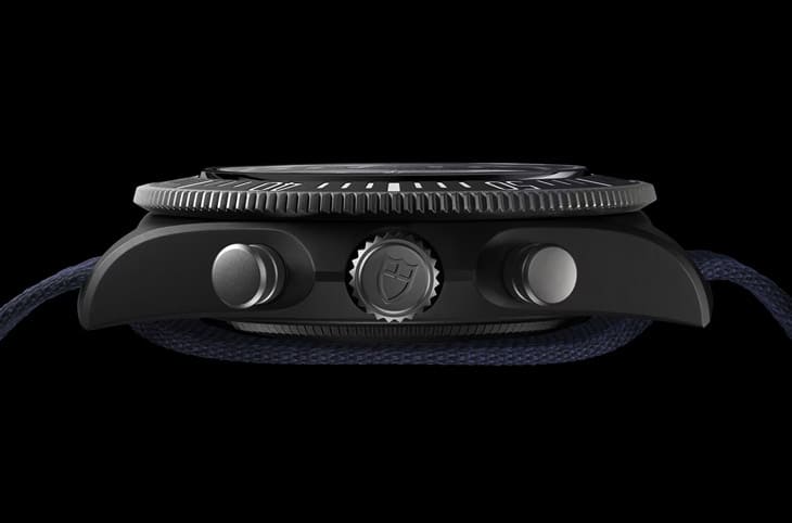 ▲Pelagos FXD Chrono「阿灵基红牛帆船队特别版」拥有独特的固定式表带桿,底盖则刻有船队的标志。