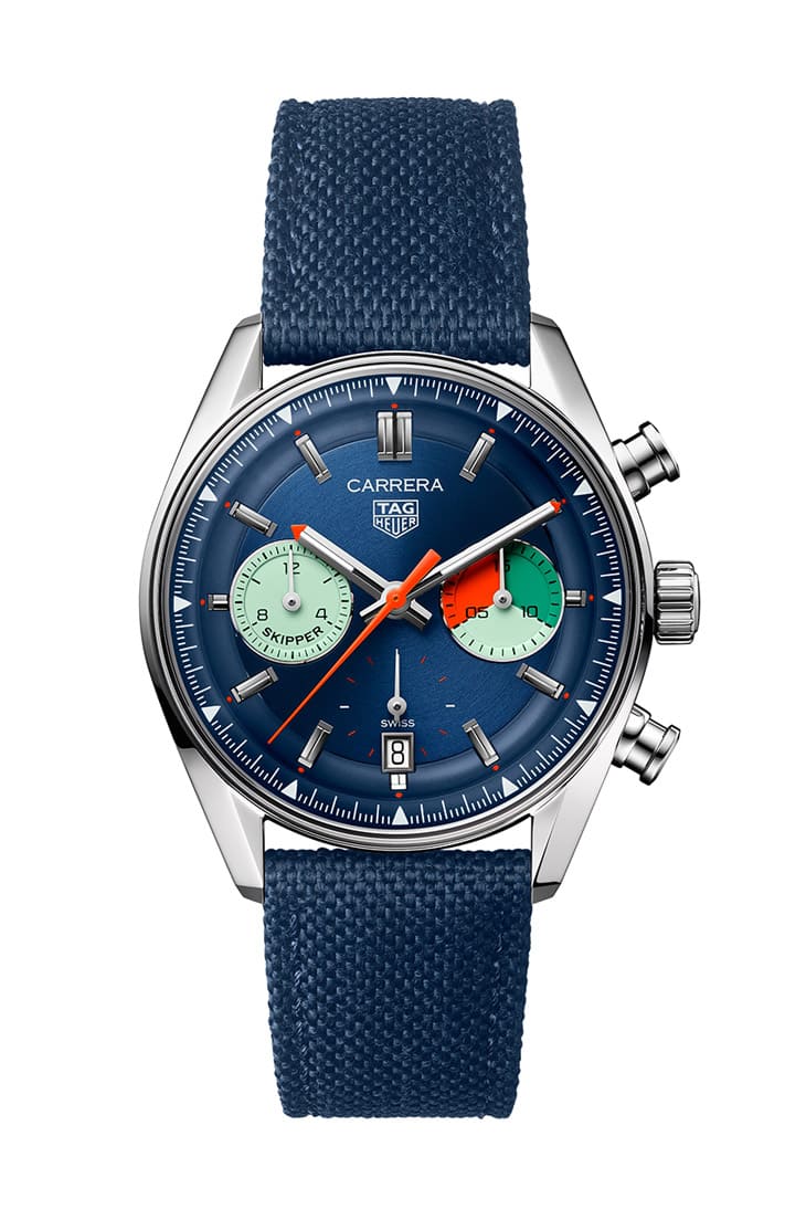 ▲泰格豪雅最近重新牵起和帆船运动的关联,品牌便以1960年代的经典Skipper计时码表为蓝本,打造出现代复古款式。