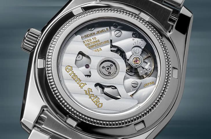 手表背面有透明底盖秀出9S85这枚高震频机芯,意指摆轮震频达到5Hz水准,其以提升震动频率的作法,让机芯可以捕捉更细致的时间步调,达到精准显时的目的。GS一方面维持高震频设定,同时也让机芯的动力储存可以达到55小时,以今日标准虽然不算非常突出,但每日佩戴手表还是可以持续替手表挹注动能,脱下手表时也有多点空间可以释放动能,隔一天再戴上手表出门时,它还是可以准确地显示时间。这枚机芯经过GS内部检测达到-3~+5的每日误差区间,表现强过瑞士天文台认证,加上可以直接欣赏到机芯结构这点,对于刺激市场入手SBGH347多少有加分效果。