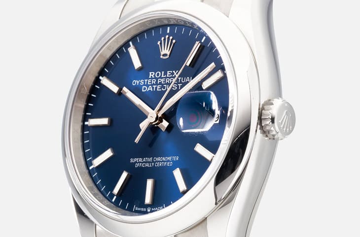 Datejust是最能代表劳力士制表理念的作品之一——实而不华而且实用至上,蛮多人选择DJ会喜欢金钢款那种坑纹表圈和五珠带的组合,然而採用拋光表圈搭配三板带的设计虽然更低调,但它同时也展现较强的运动感,是一个适合多数人和生活中各种场合的超级万用表。目前Datejust分成31mm、36mm和41mm等三种尺寸,夹在中间的36mm刚好是介于男、女表之间的过渡尺寸,因此它能吸引到两性族群,这点和SBGH347有异曲同工的味道。若把条件限制在拋光表圈(等于是指不锈钢表壳)、三板带且表圈未镶钻的设计,型号126200的Datejust 36剩下面盘顏色需要苦恼,目前此型号共有6种顏色,因为是要和SBGH347的冰蓝面放在一起讨论,因此编辑部选择的是较接近的蓝色面盘款式,这种顏色往往市场接受度高,又相对有特色一点。
