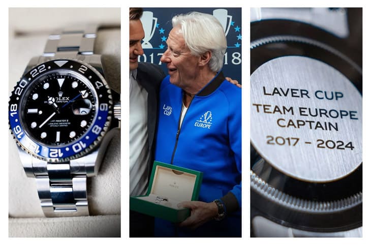 身为拉沃杯的合作品牌,劳力士在第七届赛事结束后也准备了惊喜要给欧洲队和世界队的两位元老队长,并安排了同样份量十足的品牌代言人aka「瑞士特快车」Roger Federer将礼物交给两位前辈。不过这礼物倒是不会太出人意料之外,劳力士当然是拿出自家的手表给两位网坛巨星。