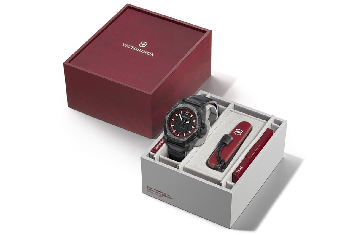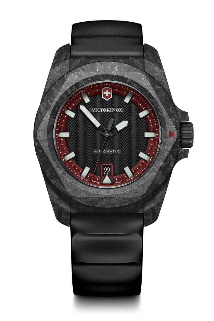 瑞士维氏于2022年之后得力于先进工艺实践的个人化风格,此次由两种材质制作的I.N.O.X. Automatic腕表再度发扬光大,因为腕表具备时势所趋的表带快拆系统,因此其除了搭配不锈钢链带或橡胶表带之外,也可选配伞绳、橡胶、皮革与木质表带,随时视场合与需求快速更换表带,呈现多变的风格。I.N.O.X. Automatic的多元性也表现在腕表的套装组合中,例如不锈钢款除了单表包装,还可选择附加瑞士军刀或附橡胶表带/表带收纳包的套装,碳纤维款式清一色都会多附瑞士军刀,其中黑面、酒红色刻度的型号242024.1全球限量1000只,它拥有最齐全的礼盒套装内容,为I.N.O.X. Automatic腕表中最能代表瑞士维氏风格的旗舰之作。