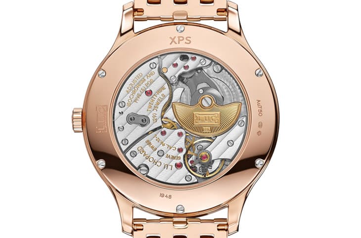 手表以萧邦特别强调、符合伦理道德标准的18K玫瑰金制成,确保贵金属的来源都能遵守社会、环保与合法的规范,同时也与其倡导可持续发展奢侈产业息息相关。L.U.C XPS的金属链带由多达七行链节组成,不用说用来制作链带的玫瑰金也是符合符合伦理道德标准。手表的纤薄程度表现在表壳厚度仅7.2mm而已,同时它的表耳线条也相对优雅纤巧,与薄型表壳同样出于符合人体工学的用意,让手表佩戴时显得轻盈又舒适。