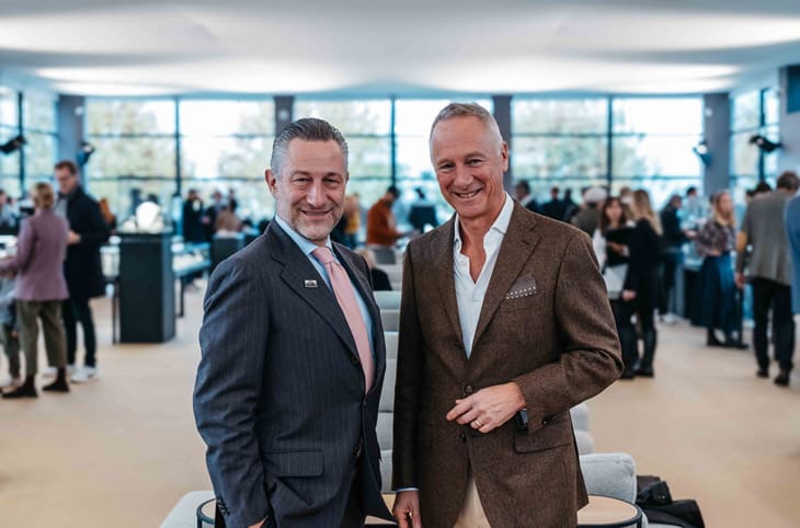 ▲富艺斯资深拍卖官Aurel Bacs(左)与朗格全球总裁Wilhelm Schmid(右)在这次的The Geneva Watch Auction: XX拍卖会上合影。