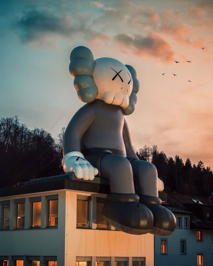 《KAWS:HOLIDAY》第12站前进瑞士,这个高达11公尺的巨型充气雕塑大喇喇地坐在爱彼总部的屋顶上,箇中想要表达当传统精密工艺与当代艺术交织碰撞激发的新火花。此次KAWS还是和长期合作伙伴AllRightsReserved策划了这场最新的大型户外艺术展。