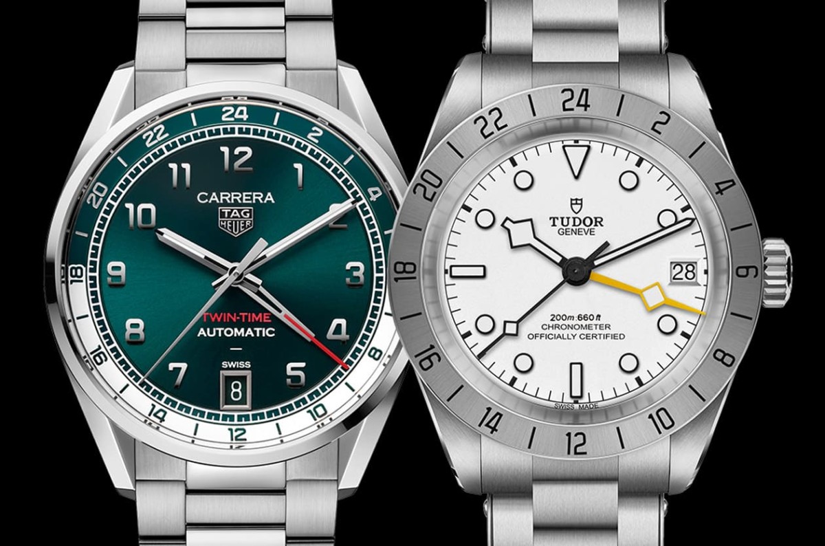 入门级两地时间手表凭藉实用的复杂功能,成为经常旅行或需与异地联系的人士心中的理想选择,不仅方便掌握跨时区行程,更增添一丝国际感,尤其在10万台币左右的价位带,市场上已有不少结合品牌形象、设计美感与专业性能的好选择。2025年新发表的TAG HEUER Carrera Date Twin-Time与TUDOR Black Bay Pro便是两款值得考虑的代表。两者都主打亲民价格与可靠的GMT机能,但风格截然不同,泰格豪雅这边以鲜明的湖水绿色面盘、自制机芯及更易调整的表带系统,展现运动与现代感;而帝舵则以坚实的钢壳、招牌雪花针及200米防水性能,呈现经典耐用的工具表风格,两款作品各具特色,无论是追求现代都会感,还是喜爱复古硬派设计,都能找到理想之选。