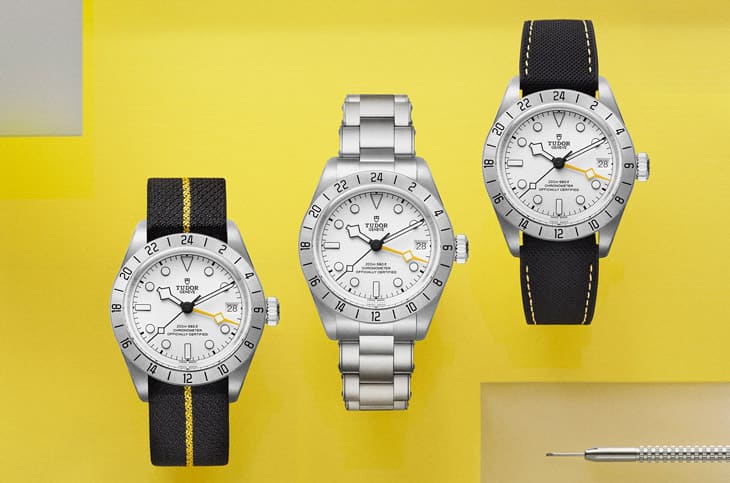 ▲改成白面的Black Bay Pro同样有三种表带款式可选,满足市场对于不同风格与搭配性的需求。