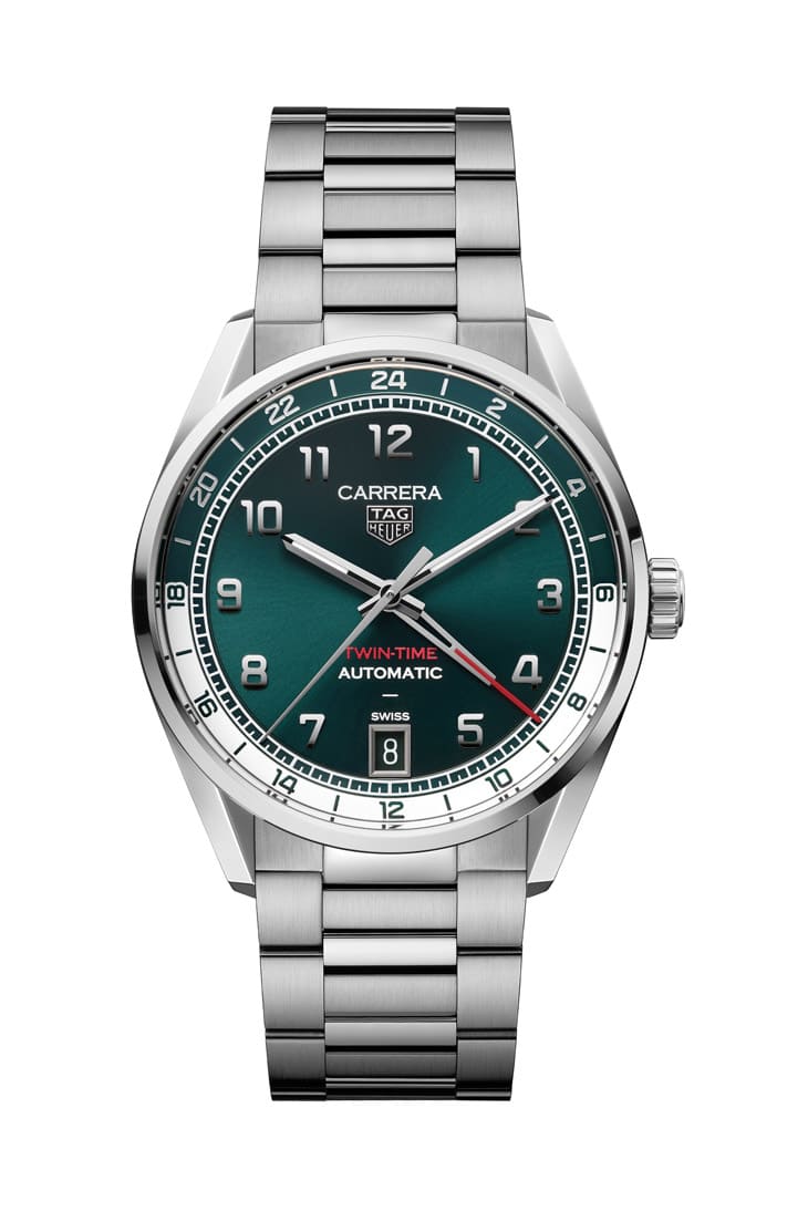 ▲随着Carrera Day-Date星期日期手表更新,家族中的进阶两地时间款式也迎来升级,其以不锈钢表壳配上绿色面盘,散发一股清新迷人的魅力。