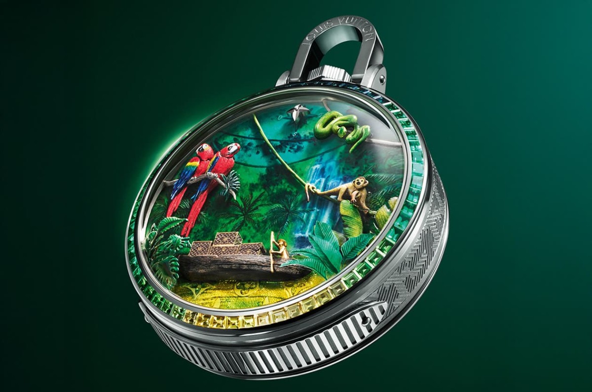 LOUIS VUITTON推出一款超越想像的怀表,因为它不是老派复古的那种,而是一只像从奇幻电影裡走出来的高级机械艺术品,名字叫做Escale en Amazonie,创作灵感来自亚马逊雨林,而且是独一无二、全球唯一的超级珍稀作品。