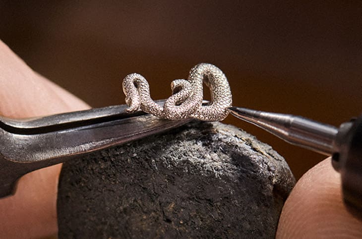 ▲路易威登工艺师在不到一公分的金蛇细致雕出数百鳞片,展现浮雕技术与生动动作,为面盘增添栩栩如生的立体层次。