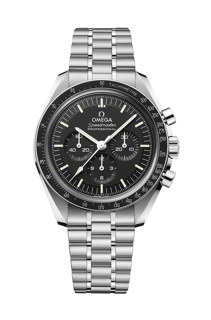 先从经典讲起,Speedmaster Professional Moonwatch,也就是传说中的「登月表」。这只表从1965年被NASA正式认证后,就跟着太空人上山下海(不,应该是上太空下地球才对),甚至在阿波罗13号的关键14秒中救了全船上的人命。现在市面上能买到的是2021年改款后的版本(如型号310.30.42.50.01.002),手表搭载大师天文台认证的手上链机芯3861,不只抗磁、抗震,还更精准。新世代的链带设计更贴手,风格也有复古韵味,是一款从裡到外都经典到不行的计时代表作。