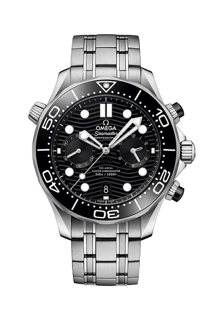 讲到欧米茄,当然不能忘了还有海马系列。这款Seamaster Diver 300M Chronograph(型号 210.30.44.51.01.001)就是兼具实用与设计的潜水计时表代表作。它具备300米防水和自动排氦阀,能应付饱和潜水等极端环境。陶瓷表圈加上雷射雕刻波浪纹面盘,使其不只功能硬派,外型也富有赏玩细节,至于内部搭载的也是9900机芯,无论日常佩戴、假日潜水休閒时都够用。