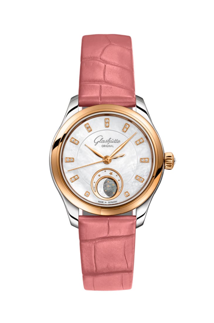 GLASHÜTTE ORIGINAL这次推出的小夜曲月相表新作,把「精致多变」四个字演绎到极致。四款新表虽然都延续了原本系列的月相设计与机芯配置,但从外观配色、材质选用到细节处理,每一款都很有个性,让人很难不被吸引。