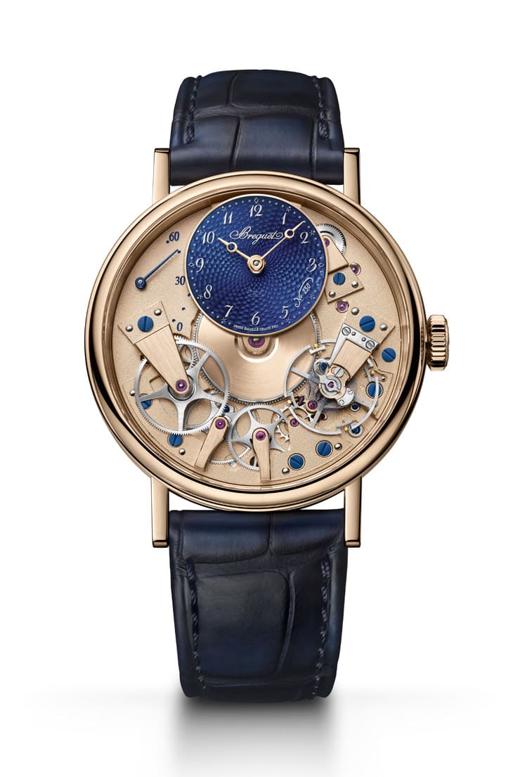 Tradition系列本来就是宝璣向自家历史致敬的代表作,而7035这款更直接呼应了创办人宝璣大师当年在18世纪末推出的怀表设计(这点和前述的Classique Souscription 2025又有互相呼应的味道),你会看到那种「机芯就是主角」的创意,不用特别把表脱下来翻到背面,包括齿轮、桥板、避震装置等全都大方露在手表正面,精妙的构造让人看得目不转睛。