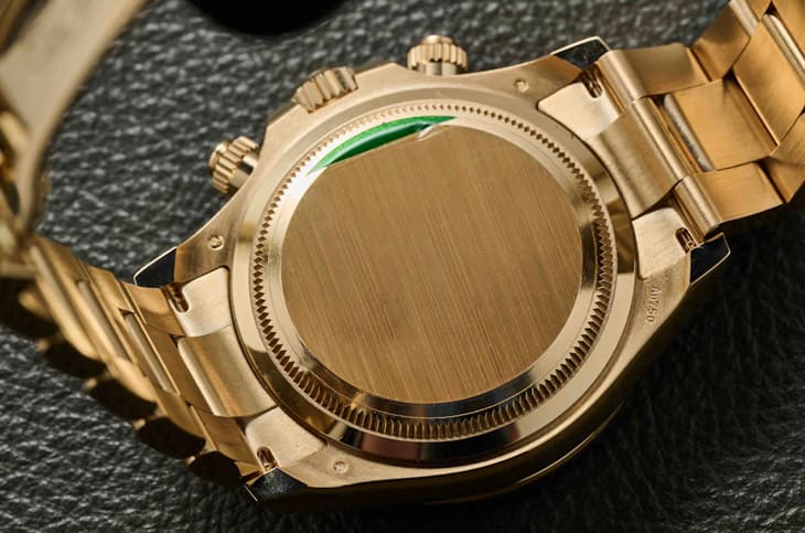 大家第一眼往往会被手表的绿金顏值吸引,但这次John Mayer 2.0最大的变化,其实是来自内部那枚新生代的4131机芯。这枚机芯取代了前代20年经典4130机芯,算是劳力士这几年在技术升级上的重大成果。从技术角度看,它保留了垂直离合与导柱轮这种赛道等级的计时架构,走时稳定度和启动手感都维持出色水准;但它也进一步引入了Chronergy擒纵系统,让动能效率更好、抗磁性能也更强;另外,换上Paraflex避震器加持下,抗冲击能力变强,让它更适合日常佩戴,不用小心翼翼害怕碰撞,最棒的是,动力储存依然维持在稳健长效的72小时,也就是说周五下班放着,周一早上戴上依旧能精准运行,虽然这款黄金版还是没跟上铂金款採用透明底盖,这样当然看不到机芯风景,但说实话,对劳力士来说,实底盖反而更经典、更硬派,也让人更能聚焦在手表本身的实用性上。