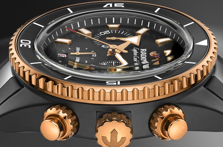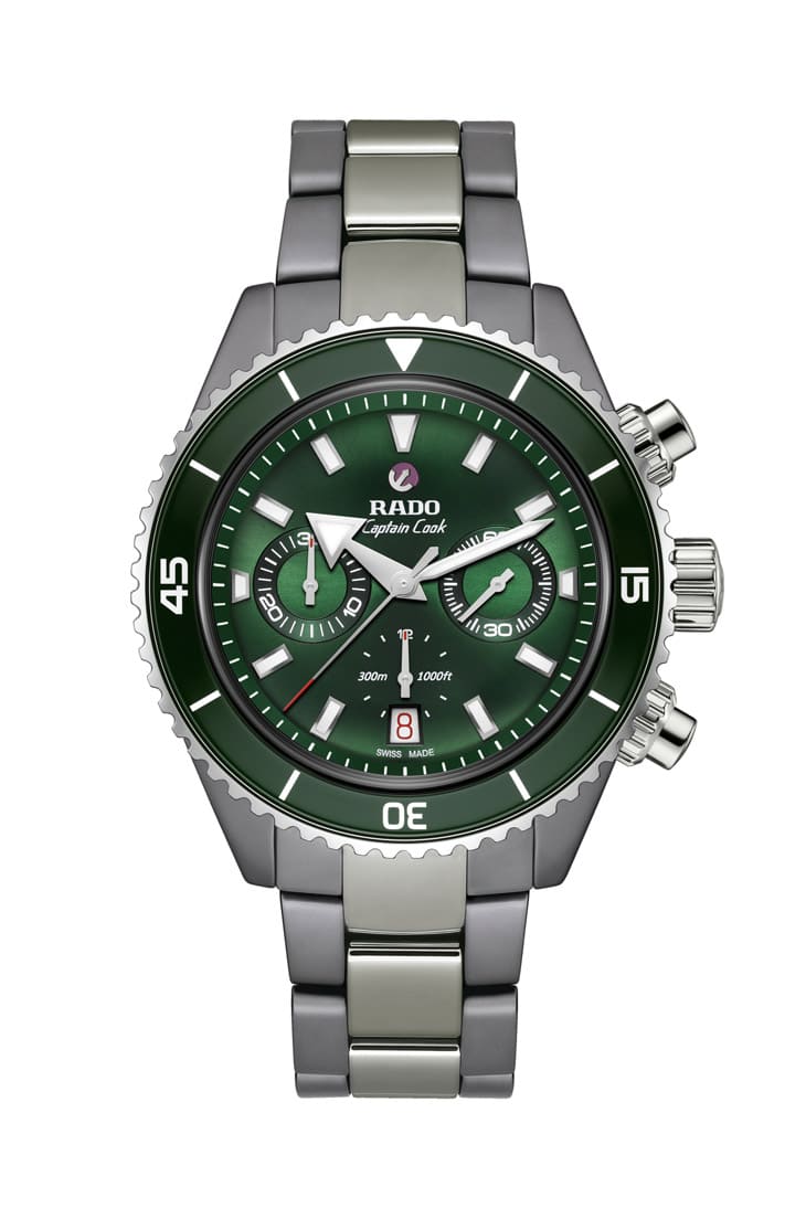 ▲库克船长高科技陶瓷计时码表为系列首款全陶瓷计时表,展现RADO在材质与机械结合上的实力,象徵品牌迈向高阶运动时计新境界。