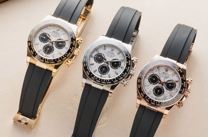 ▲2025年登场的三款陨石面Daytona一律配置Oysterflex表带与黑色陶瓷表圈,款式选择比起上一代稍微少一点,但产品价格却是大幅成长。Source:Fratello Watches