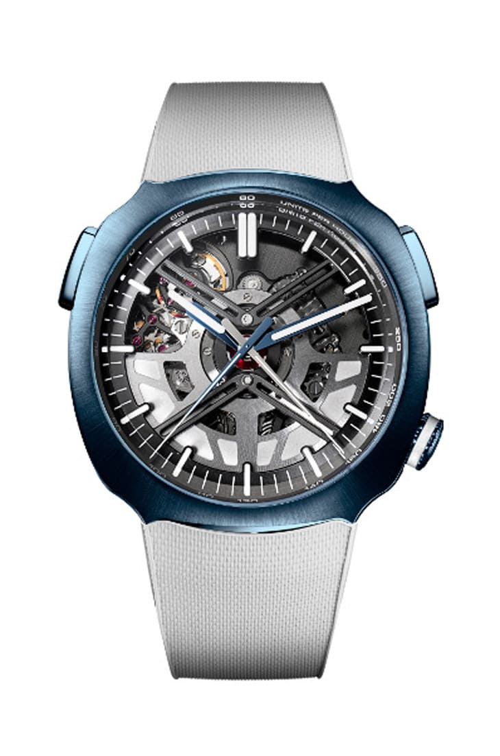 PVD不锈钢材质/HMC 700自动上链机芯/时、分、秒显示/蓝宝石水晶镜面、透明底盖/防水120米/表径42.3mm/限量200只/参考价:CHF 59,000