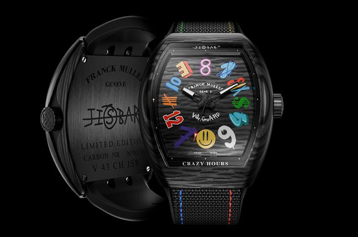 FRANCK MULLER另一个让人津津乐道的亮点,是它与艺术界的跨界合作,这种「让手表变成艺术品」的策略,不只拓展了品牌形象,也让它吸引更多新世代藏家。2025年他们携手法国街头艺术家Jisbar,为招牌的Crazy Hours系列创作联名面盘,面盘上的笑脸、金钱符号、倒置字母,都突破了传统时间阅读逻辑;更令人惊艳的是,这次联名还推出五种不同材质的限量版本,每款各限量50只,还附上Jisbar专为表款创作的画作切片。对藏家来说,这不再是一只表,而是一件带着作者签名的独一无二艺术收藏。