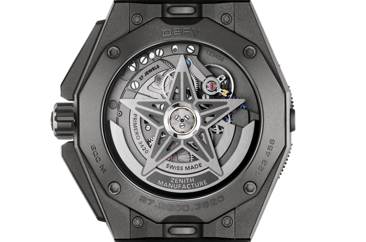 ▲DEFY Extreme Diver Shadow搭载El Primero 3620高震频机芯,稳定耐用并具备防磁机构,透背设计兼顾实用与观赏性。