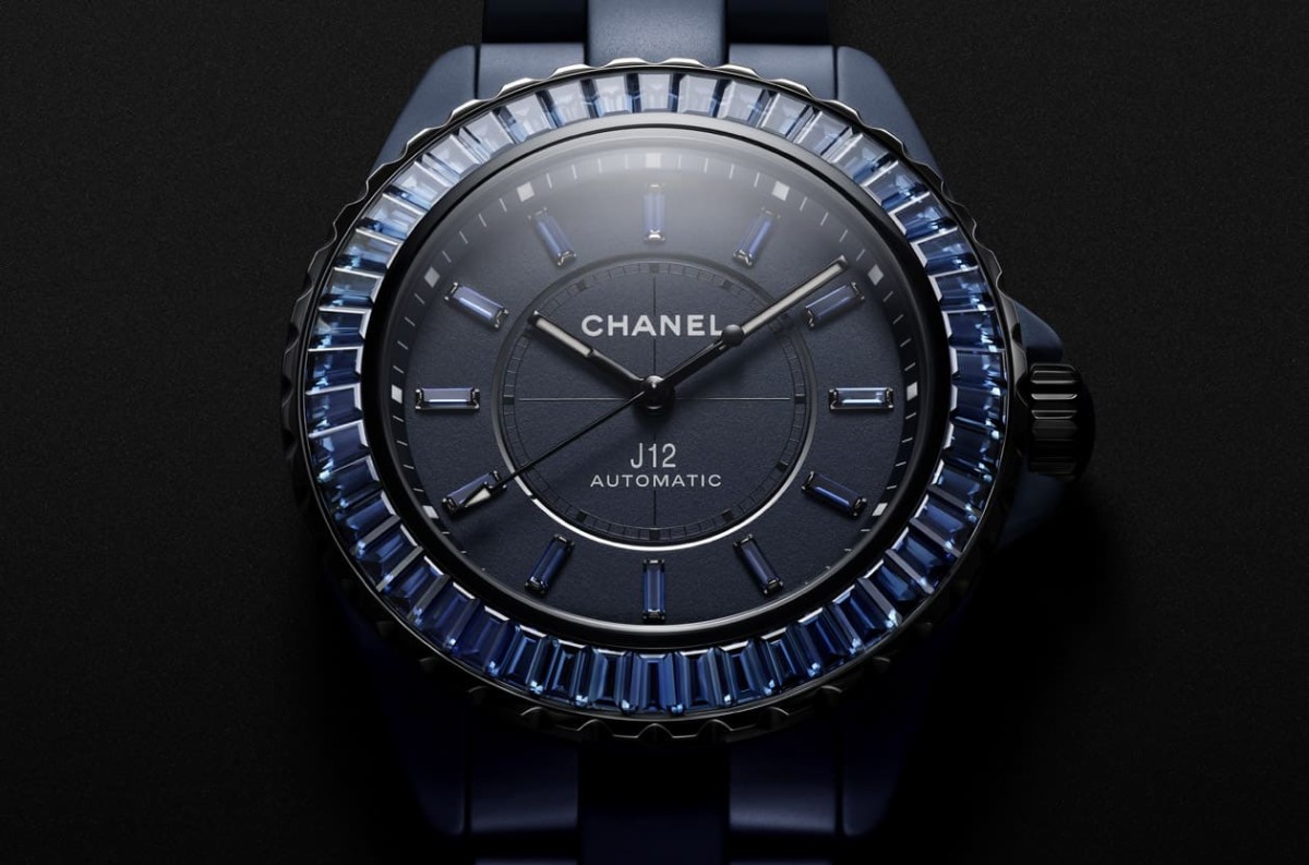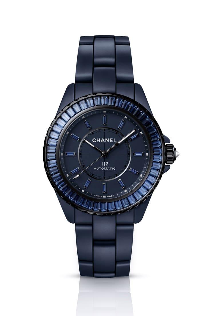 《J12 Bleu》系列的设计,亦刻意强调材质对比,蓝陶瓷与黑色元素、蓝宝石水晶,搭配天然蓝色蓝宝石的设计,让色彩更显丰富,层次更具戏剧性,进一步强化了腕表的视觉魅力与辨识度。