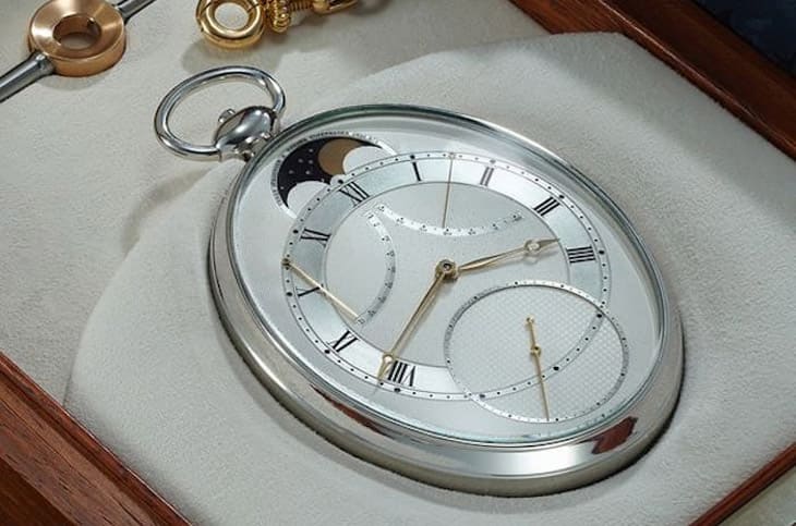 ▲此为Derek Pratt设计、Voutilainen完成的铂金怀表,结合飞行陀飞轮、恆定动力擒纵与多项复杂功能,展现20世纪顶尖制表工艺。