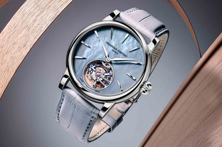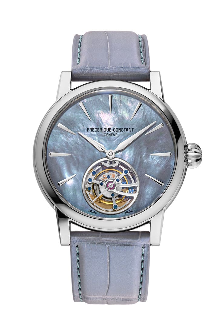 在讲求高精准与审美并重的复杂手表领域,FREDERIQUE CONSTANT这次端出一款意想不到的作品:经典陀飞轮自制机芯珍珠母贝限量表(Classic Tourbillon Manufacture)。虽然说康斯登自2008年推出自制陀飞轮以来,这项复杂功能早已成为他们的工艺代表,但这回的创新,并非在机芯结构上做文章,而是将自然素材与高级制表技术结合,玩出全新视觉层次。
