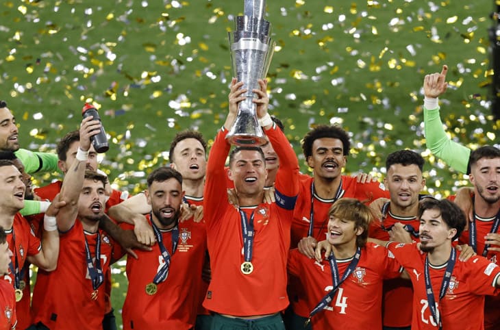 ▲C罗率葡萄牙国家队经PK大战击败西班牙,勇夺2025年欧洲国家联赛冠军,成为史上首支二度封王的球队。赛后他感性落泪,称此役是「为国而战,使命完成」。Source:UEFA EURO