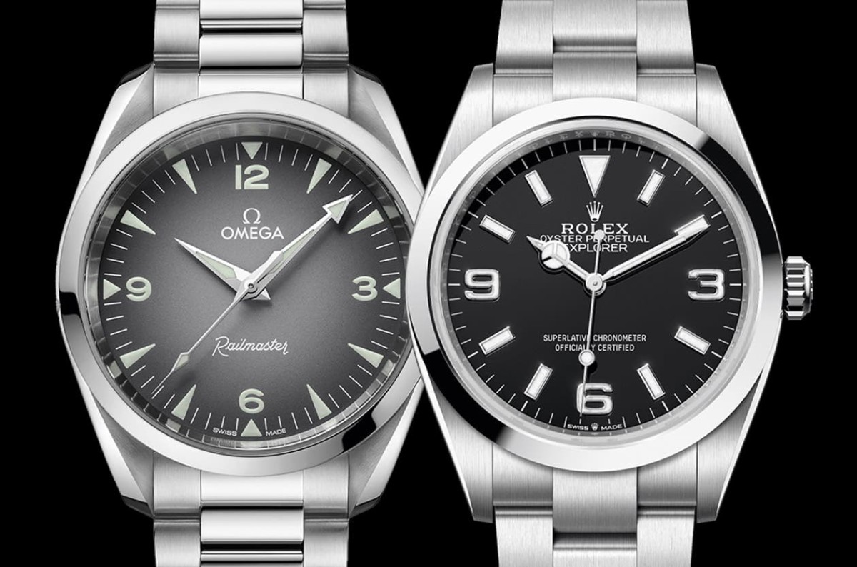 对许多表迷来说,三针工具表不只是计时工具,更是品牌工艺与精神的浓缩体。这次我们挑选两款风格相近、定位鲜明的代表作来PK:劳力士Explorer 36mm(124270)与欧米茄新改款的铁霸链带款(235.10.38.20.06.001),两者同样属于无日期三针结构、尺寸介于36至38mm之间,且皆承袭自1950年代的经典原型。Explorer凭藉与极地探险的不解之缘与品牌稳健美学,早已成为工具表代名词;而铁霸则以铁道工程背景出发,经历现代重塑后,成为具备高抗磁性能的日用强者,这场比较,是对经典再诠释的双重视角,也是两大品牌工艺哲学的直接对话。