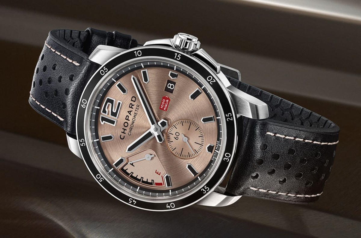最吸睛的莫过于它那鮭鱼色面盘,这种色调并非萧邦随意选择,而是来自1940至1957年间参与Mille Miglia的经典赛车仪表板色彩,细致的缎面打磨处理,让这种金属感十足的温暖色泽带有一种复古情怀,表圈与指针、时标则採黑色元素,并覆以X1级Super-LumiNova®涂层,日夜皆清晰易读,增添现代运动表的刚性调性。