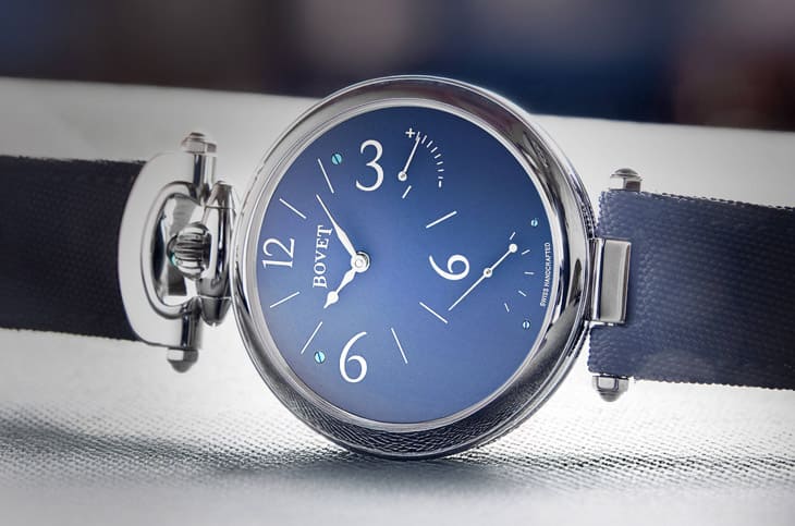 机芯表面从鱼鳞纹到日内瓦波纹、从倒角打磨到蓝钢螺丝,处处可见BOVET团队的耐心与细腻,更值得一提的是,机芯结构中有超过九成以上零件皆由品牌自家工坊制作,再于位处瑞士Fleurier山谷的Château de Môtiers古堡内完成组装与测试,这样的垂直整合能力,在今日制表业仍属少数。