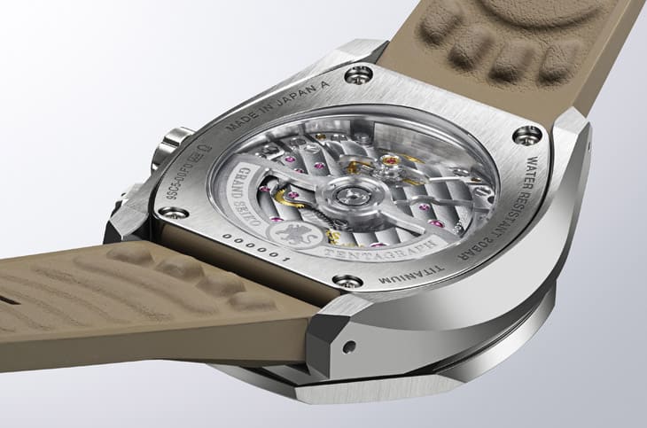 钛金属材质/9SC5自动上链机芯/时、分、小秒、日期显示/计时码表功能/蓝宝石水晶镜面、透明底盖/防水200米/表径43mm/参考价:NT$ 470,000