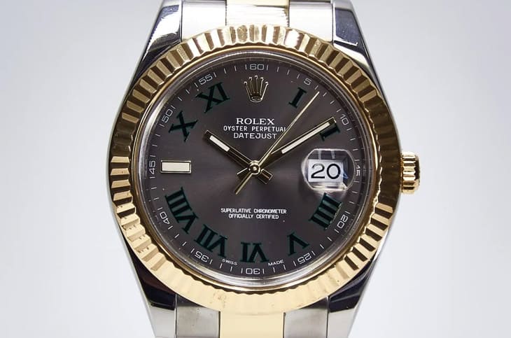 ▲劳力士在2009年于Datejust II系列中开发出一种板岩灰色面盘搭配绿色勾边罗马数字时标的设计,成为温布顿面盘的滥觴。Source:Watchworks