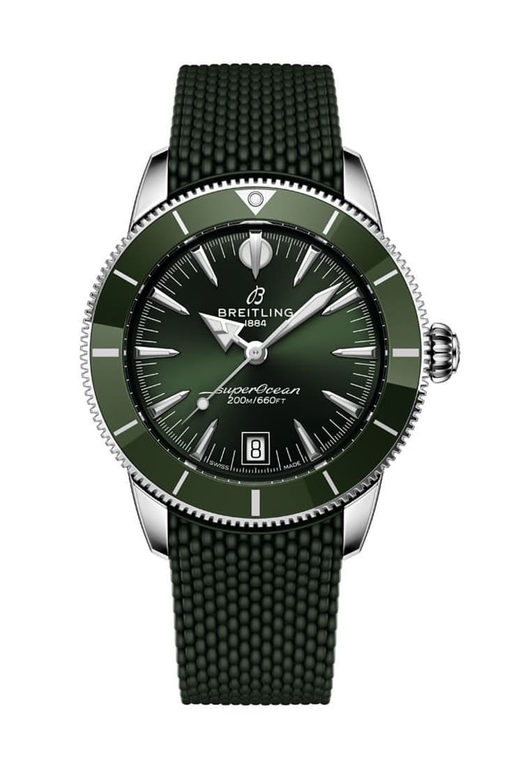 以复刻1957年经典潜水表为主轴的Superocean Heritage系列,在2025年迎来更新版,这款40mm表径、绿面陶瓷表圈的手表,不论单穿或情侣共用都适合,绿色面盘也呼应时下流行色彩,低调又不失个性,其网状图案橡胶表带不仅增添复古韵味,更与表壳完美贴合。表款搭载BREITLING自家研发的B31自动机芯,拥有约78小时动力储存,还能透过透明底盖欣赏鱼鳞纹与日内瓦波纹的机芯修饰。