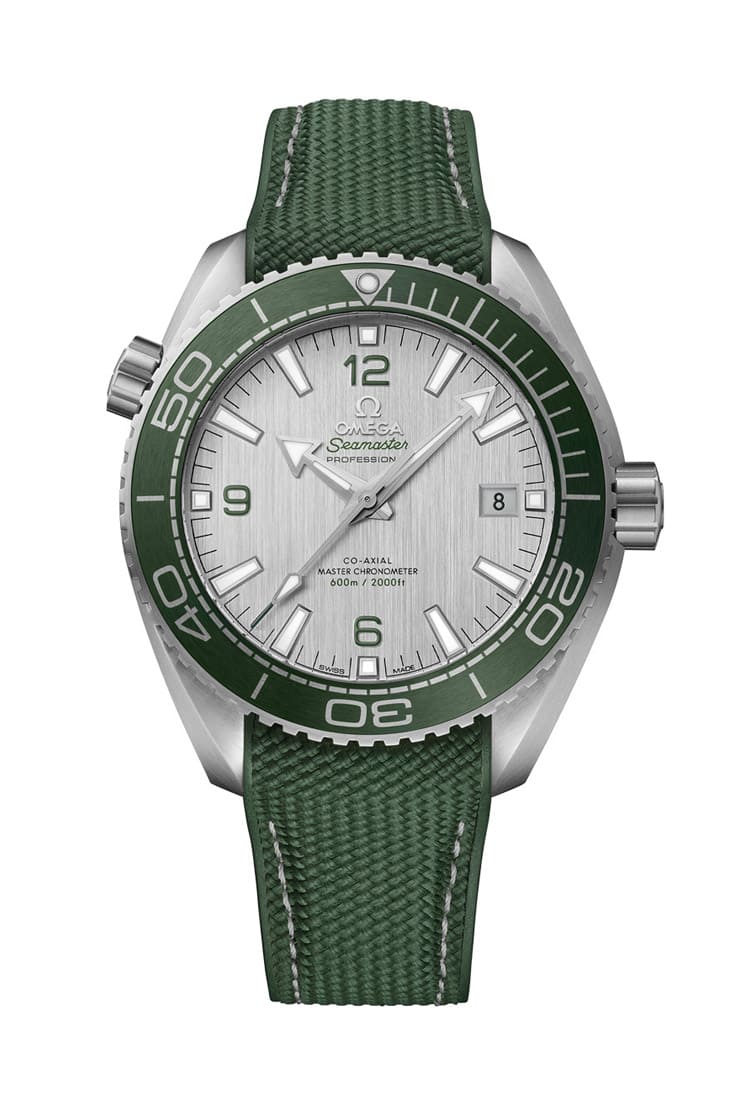 这款海马PO 600米潜水表,集专业与时尚于一身,43.5mm的不锈钢表壳搭配灰绿色面盘与同色陶瓷表圈,气场十足。绿色橡胶表带外观做成织物纹理,还缝上灰色线条,让它不管是在深海或市区都不突兀。手表内部搭载欧米茄8900自动机芯,具备60小时动力储存与大师天文台认证,加上印有经典海马图案的透明底盖又能展现机芯底板与自动盘的阿拉伯式日内瓦波纹,连内行人都会赞嘆其完成度。