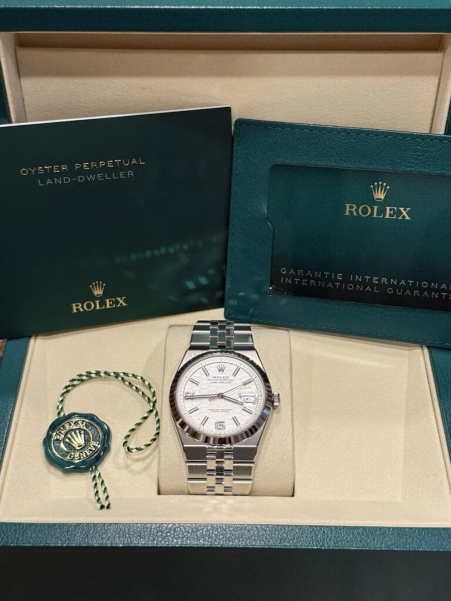 Land-Dweller今年甫登场时,便因其重新演绎Oysterquartz风格的外观,加上表壳、链带、底盖乃至机芯的全面革新,瞬间成为全球表迷焦点,它融合了1970年代经典美学与当代制表工艺,分别有40mm与36mm两种尺寸,对于劳力士手表而言此系列作品也罕见地採用透明底盖,再配合一体式链带与高规格机芯,让业界与市场对其评价都很不错。