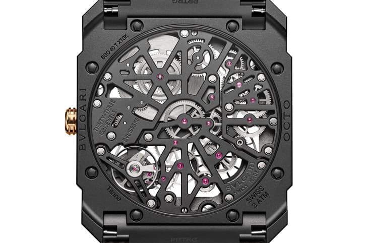 ▲Octo Finissimo Skeleton 8 Days以黑色DLC钛金属搭配玫瑰金细节,镂空设计与8日动力储存兼具刚柔,呈现戏剧性视觉张力。