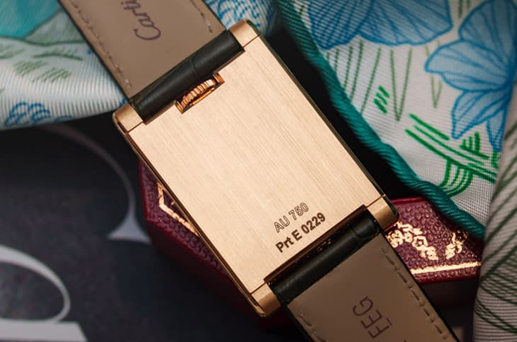 在简洁的外观背后,Tank à Guichets藏着一枚值得细品的自制机芯:9755 MC手动上链机芯,源自伯爵着名的430P超薄机芯架构,卡地亚再根据跳时与拖曳分钟显示的特殊需求进行重新设计。这枚机芯厚度仅有2.1mm,却整合了复杂的跳时轮系与稳定的拖曳分钟模组,卡地亚特别针对跳时装置的稳定性与精准度进行强化,确保数字每小时切换时能即时瞬跳不延迟;同时,由于机芯本体与表壳轮廓高度契合,也让整体厚度得以压缩至仅6mm,是外观纤薄的关键。9755 MC机芯的震频为3Hz,提供约43小时动力储存。虽然表款採实心底盖设计无法直视机芯结构,但根据卡地亚一贯作风,内部打磨与零件修饰自然不在话下,整体而言,9755 MC机芯是美学与技术双向妥协后的成果,它不追求炫技的超复杂功能,而是把重点放在稳定性、纤薄与特殊显示的完美结合,这样的机芯,正是Privé系列应有的样貌:不张扬,却经得起行家检视。