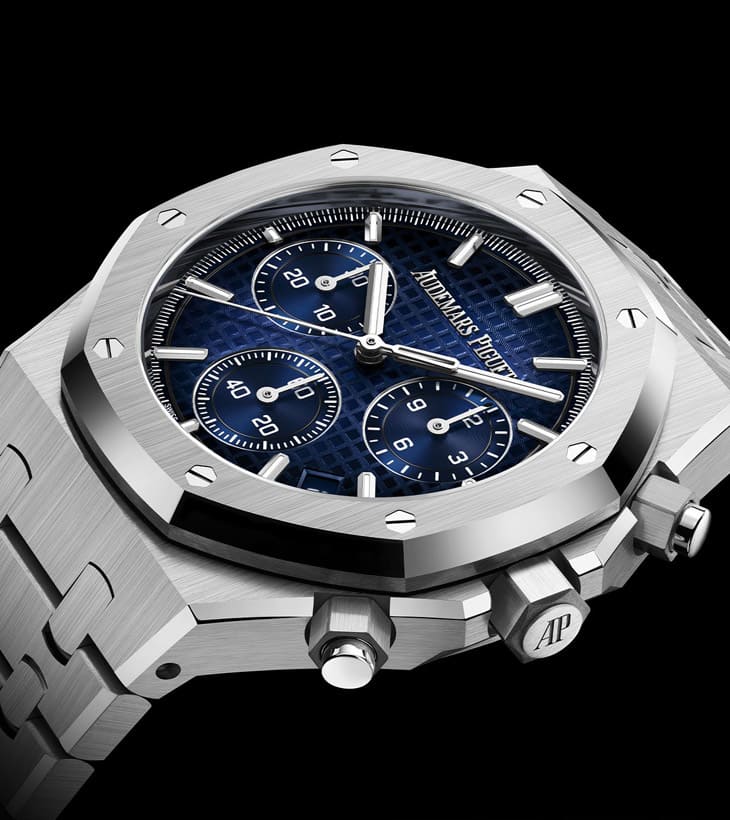值得一提的是,两款新表皆维持皇家橡树一体式链带的经典设计,全白金材质无论佩戴手感或视觉份量感皆属顶级,加上蓝宝石水晶镜面与旋入式表冠,防水性能达50米,日常佩戴绰绰有餘。