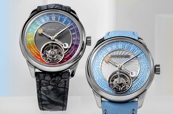 ▲法国独立制表品牌SARTORY BILLARD首度进军亚洲,与SHH推出八款融合文化与工艺的限量飞行陀飞轮,腕表成为跨新加坡、马来西亚、泰国与台湾等四地城市的艺术载体,图为代表新加坡的两个版本。