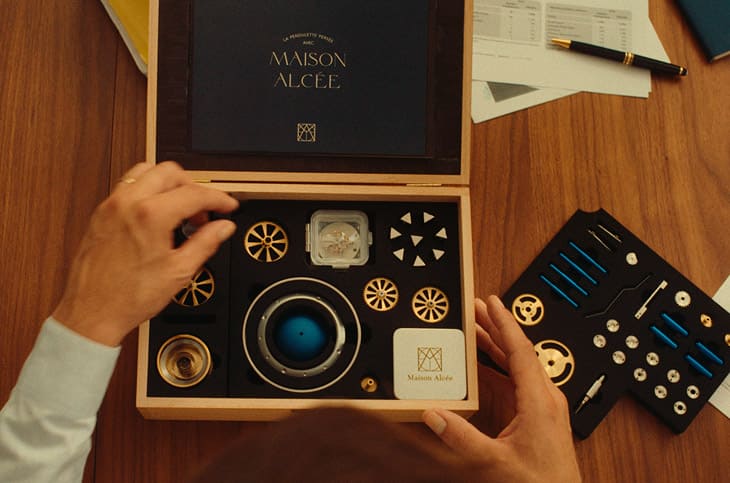 钟表在多数人心中的印象是一种佩戴在手腕上的工艺品;但对MAISON ALCÉE这个法国新锐品牌而言,它更是一场关于时间的创作旅程,MAISON ALCÉE诞生于2019年,由制表圈新星Alcée Montfort创立,他虽然年轻,却拥有深厚的奢侈品背景与创新眼光,品牌创办人曾于爱马仕、卡地亚及泰格豪雅等知名品牌服务,对工艺美学与用户体验有着独到的理解,MAISON ALCÉE的目标并非只是制造「美丽的产品」,而是打造能让人「参与其中」的奢华体验。