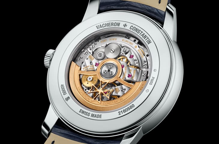 ▲多数Patrimony款式配备透明底盖,可欣赏经日内瓦印记认证的精致机芯,自动表的自动盘鐫刻马耳他十字,展现江诗丹顿顶尖机芯修饰与传统工艺的精华。