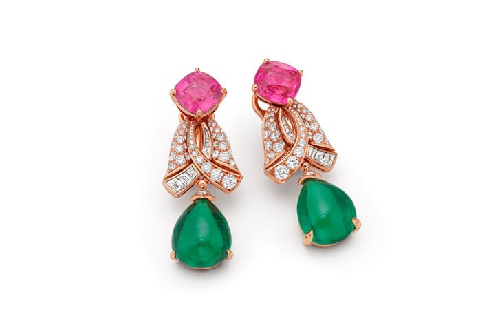 ▲Aeterna系列Verdant Grace顶级玫瑰金祖母绿、尖晶石与钻石耳环。