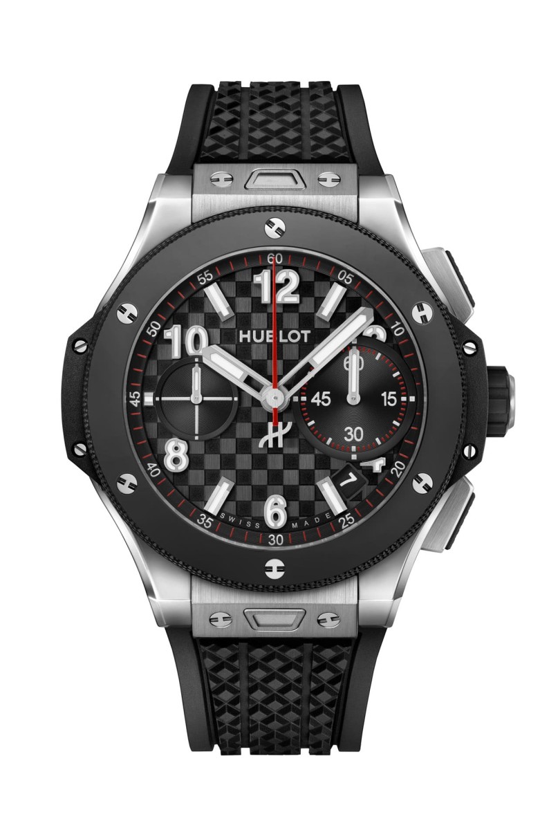 採用轻盈坚固的钛金属搭配黑色陶瓷表圈,呈现金属与陶瓷的双重质感层次。碳纤维纹理面盘与运动风配色交织出冷冽科技感,延续Big Bang的功能美学初衷。