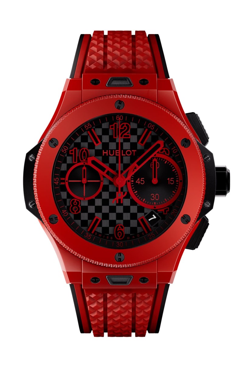 红色陶瓷材质/HUB1280自动上链机芯/时、分、小秒、日期显示/计时码表功能/蓝宝石水晶镜面、透明底盖/防水100米/表径43mm/限量100只/参考价:NT$ 982,000
